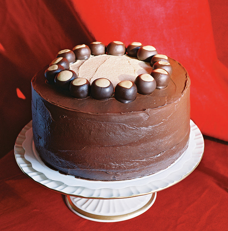 Topped with one dozen homemade buckeye candies, The Original Buckeye Cake is made to resemble Ohio’s favorite treat. Inside, you will find a perfect balance of deliciously creamy peanut butter and chocolate chip frosting set in between three moist layers of peanut butter cake.